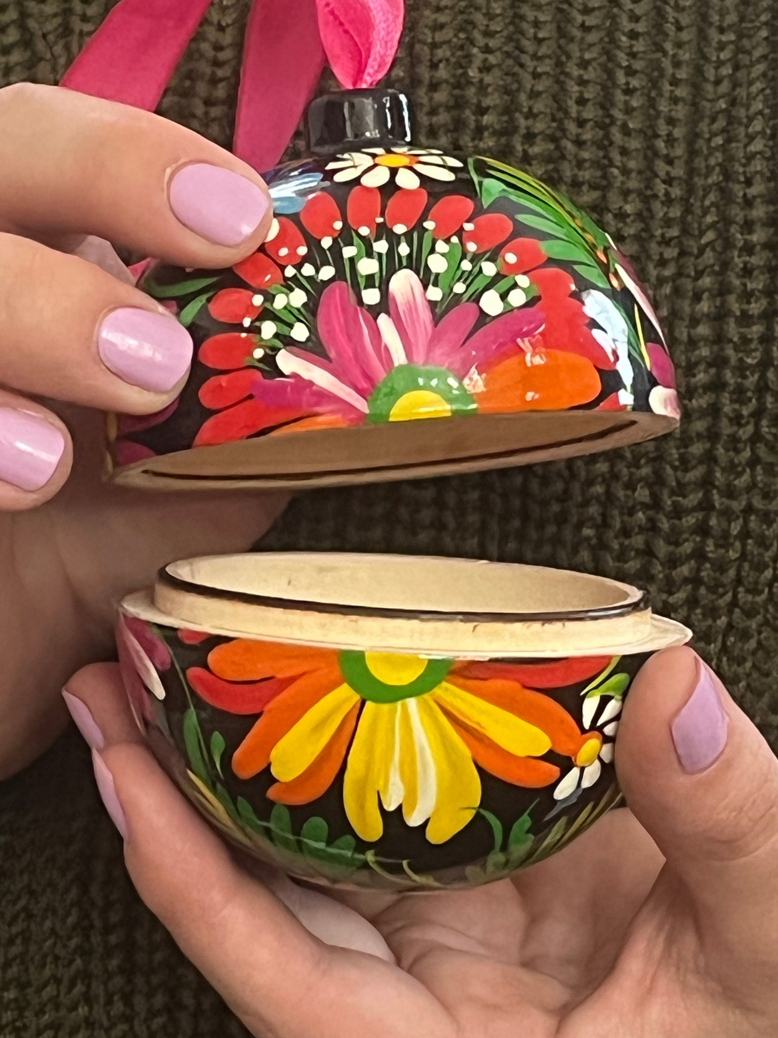 Wooden Hand painted ornaments, Petrykivka, Ukrainian traditional painting