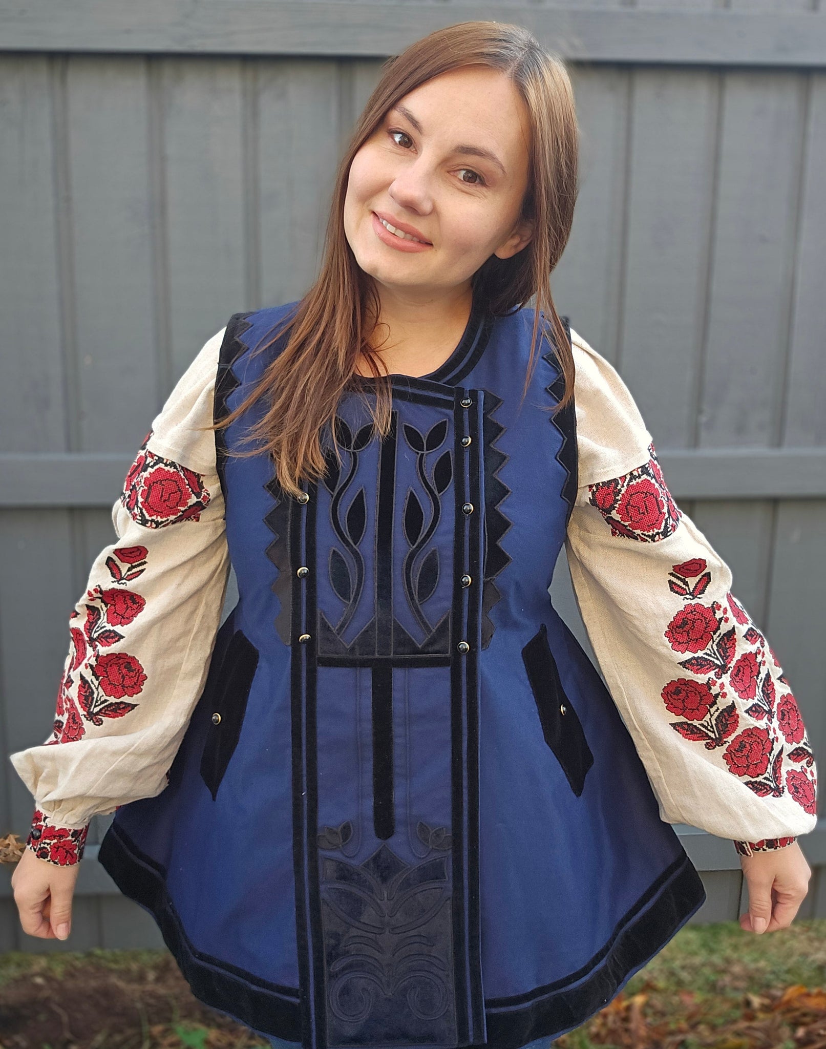 Replica of Antique Ukrainian Corset from 19th century / navy