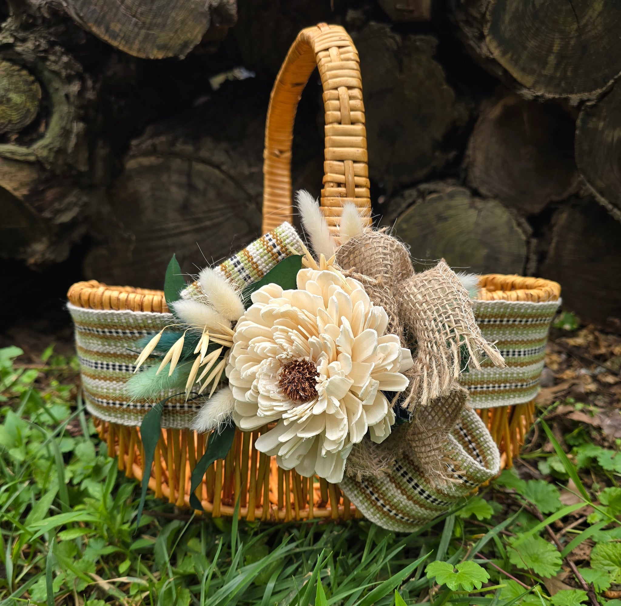Designer Etno style Basket "Pole", dry flowers and organic fabric / adult