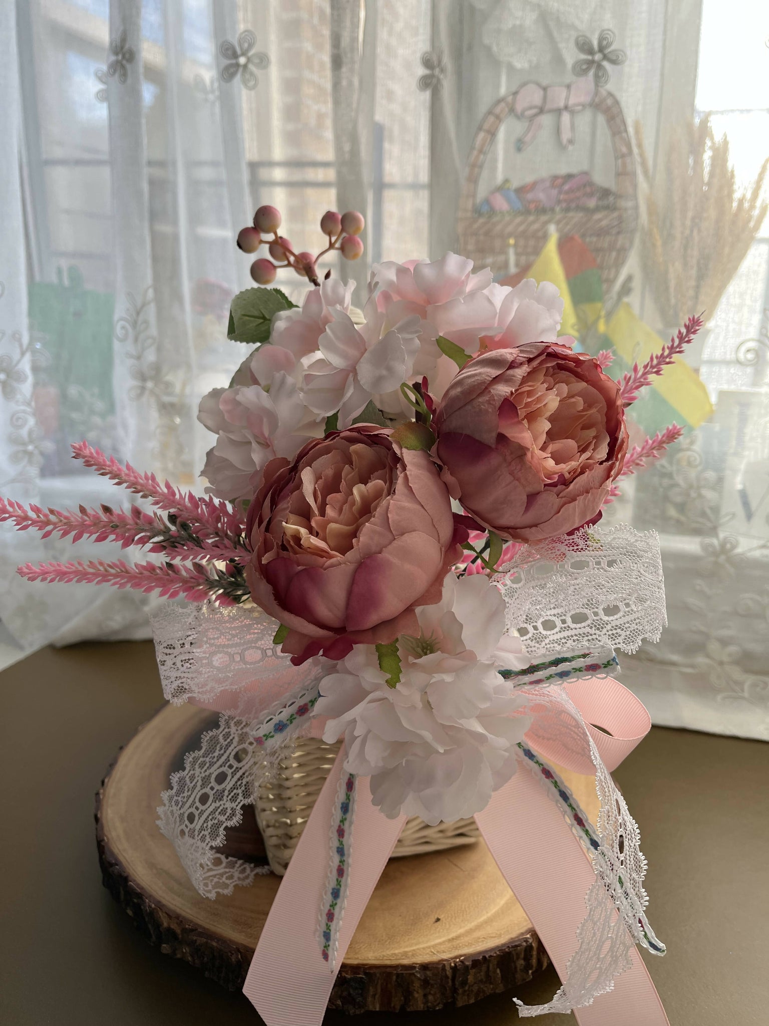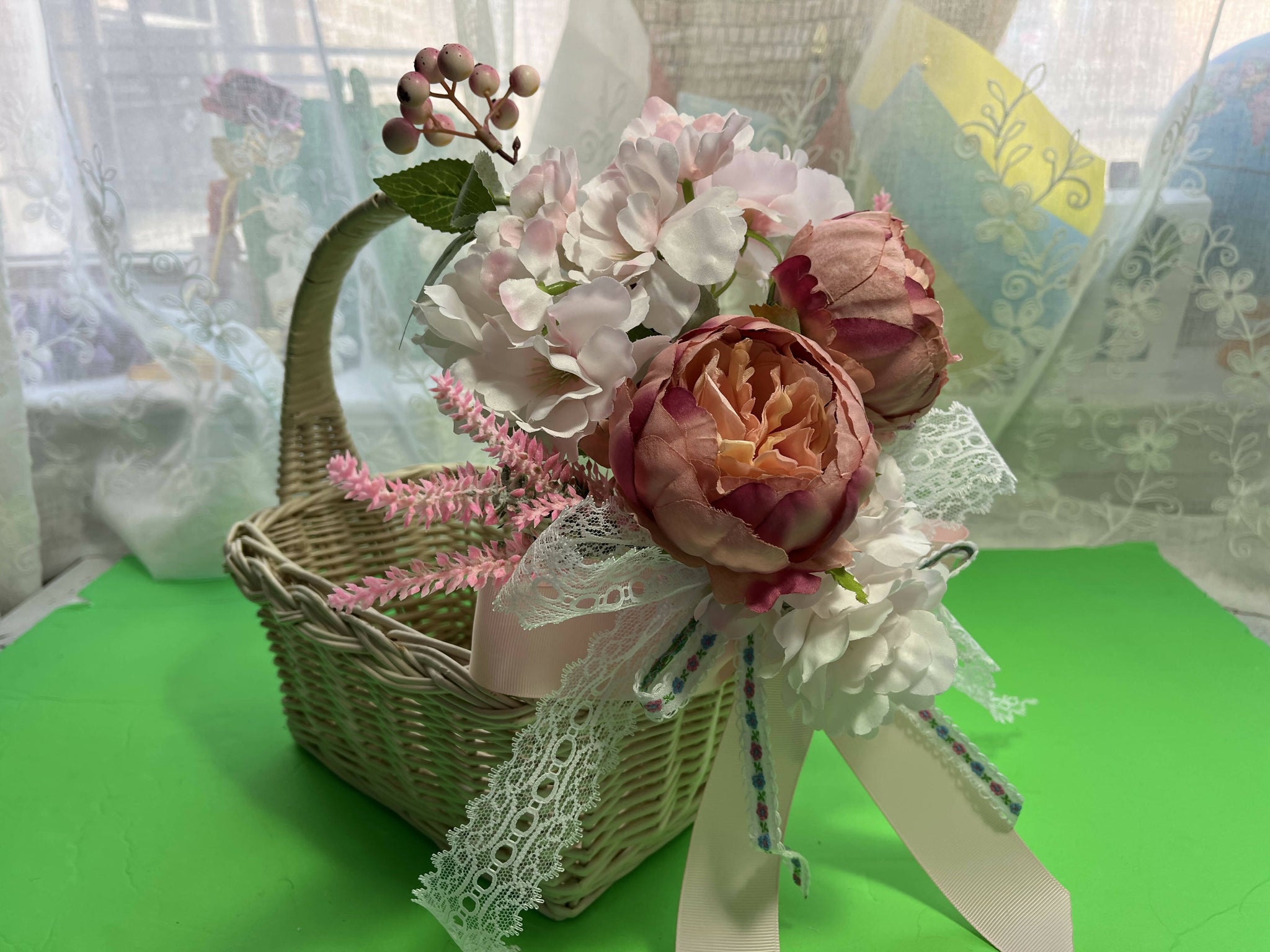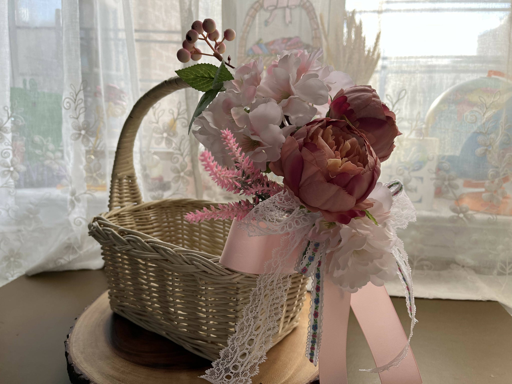 Beautiful Easter basket decorations “White and pink spring flowers”
