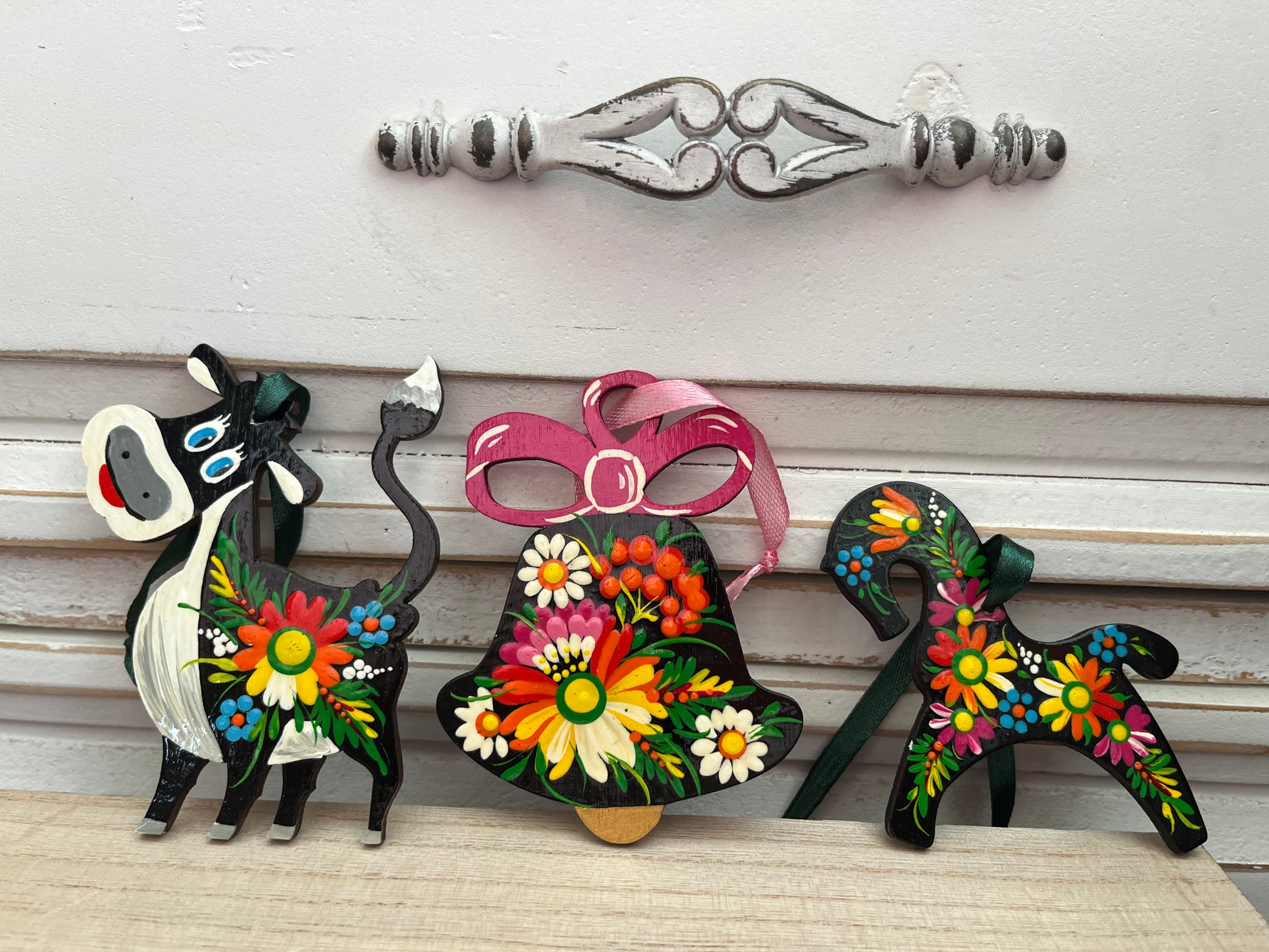 Ornaments are hand painted on wood Please keep in Mind that each ornament maybe a little different because each of them is hand painted. Ships from USA in 1-2 business days. —————