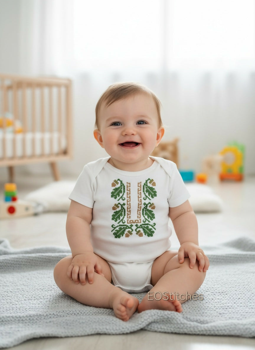 Beautiful embroidered bodysuit for little girls in traditional Ukrainian style.