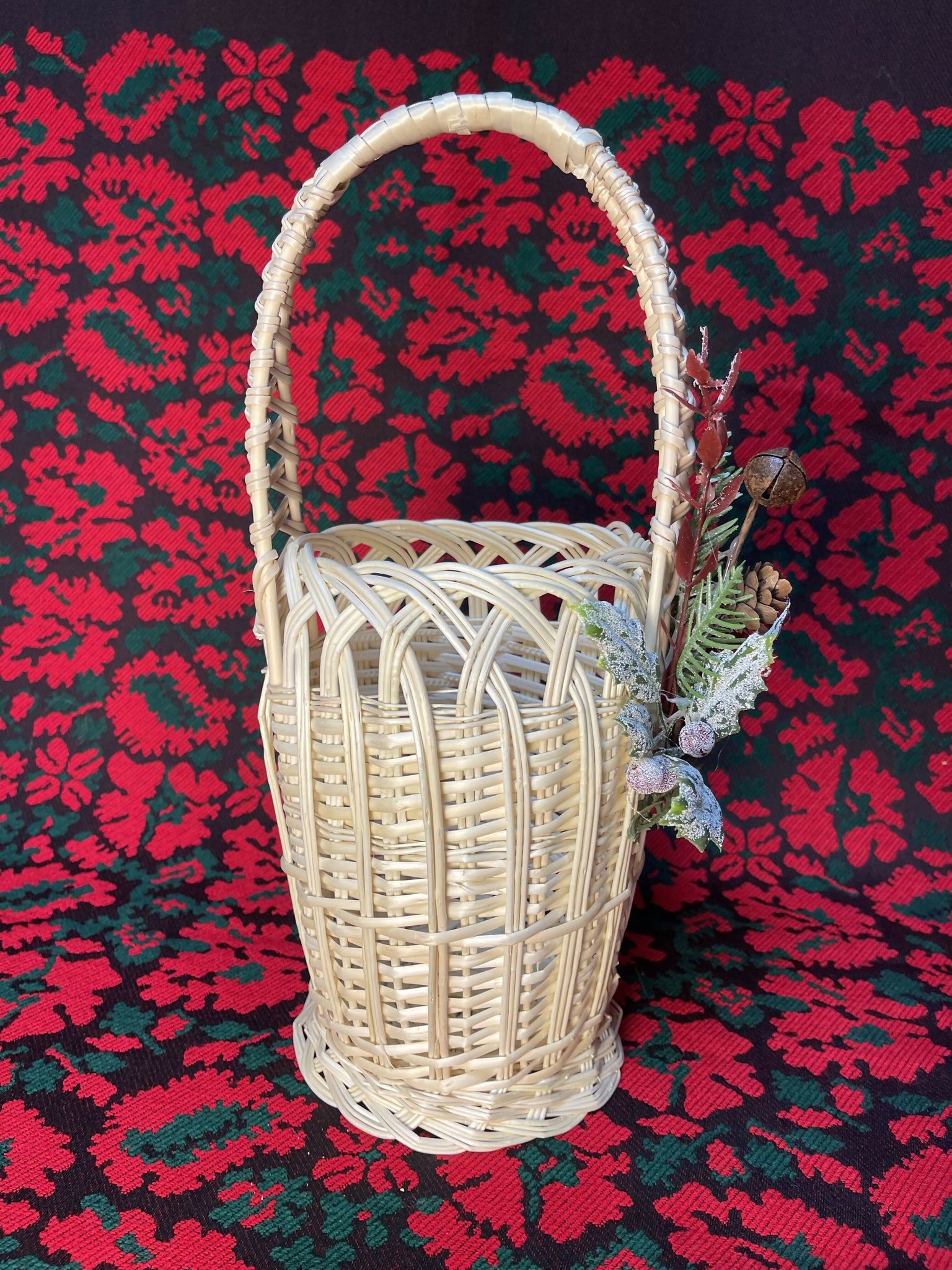 Стильний плетений кошик, декорований зимовою зеленню та ягодами. Ідеально підходить для освячення води на Водохреще або як святковий декор оселі. Натуральні матеріали, легкий та унікальний дизайн