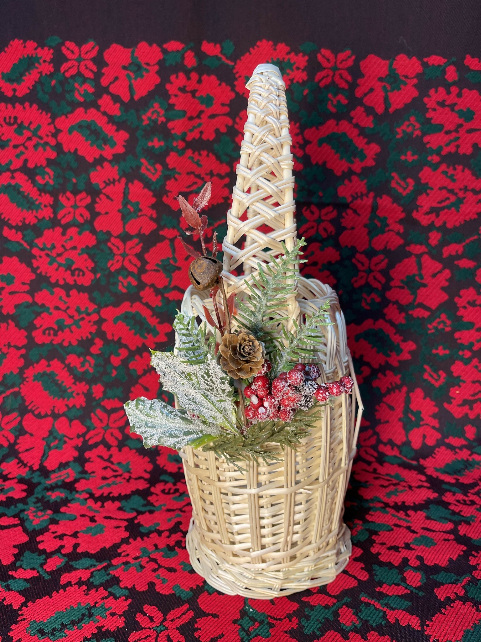 Кошик для Водохреща – ручна робота Стильний плетений кошик, декорований зимовою зеленню та ягодами. Ідеально підходить для освячення води на Водохреща.