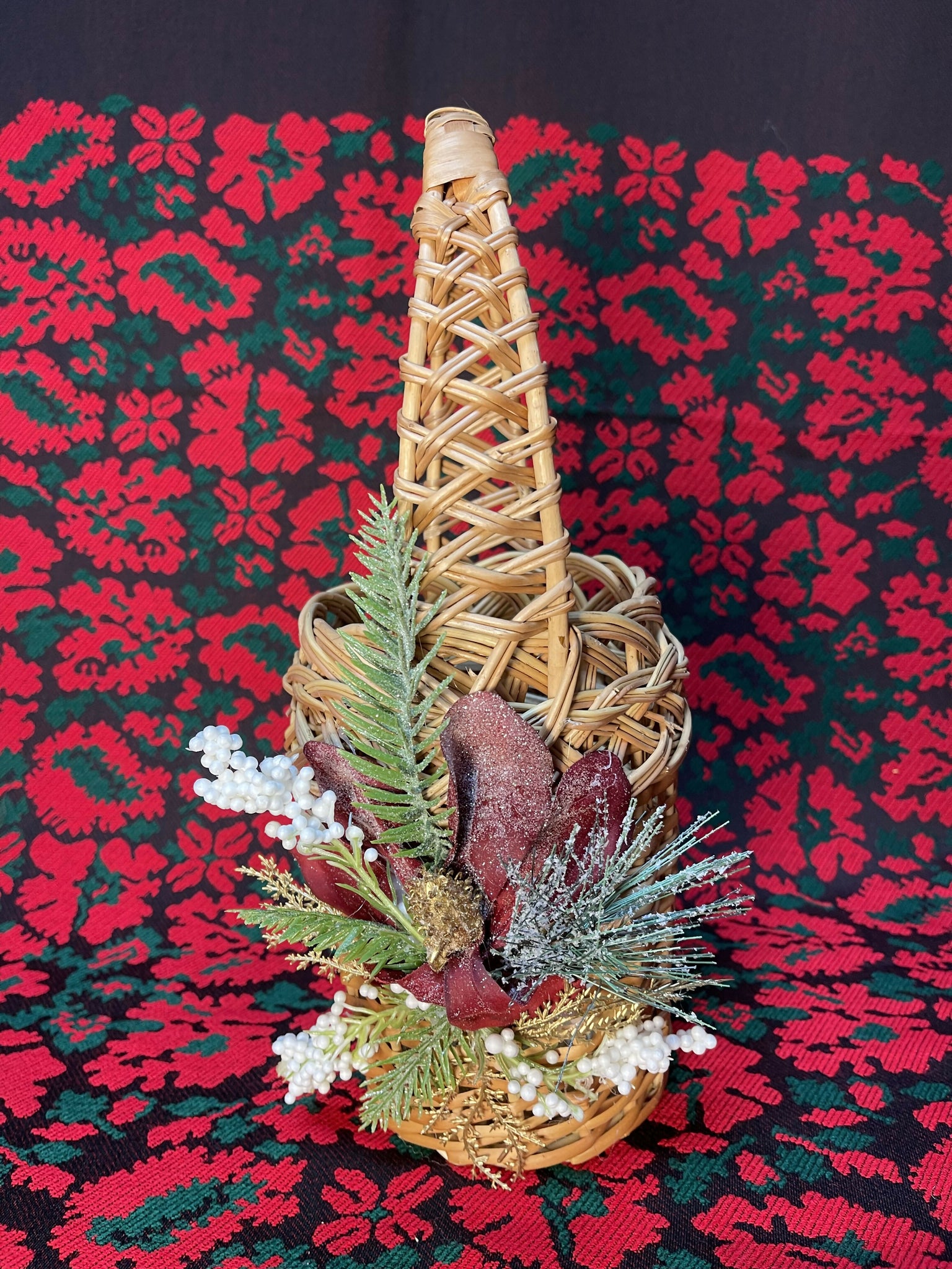 Стильний плетений кошик, декорований зимовою зеленню та ягодами. Ідеально підходить для освячення води на Водохреще або як святковий декор оселі. Натуральні матеріали, легкий та унікальний дизайн