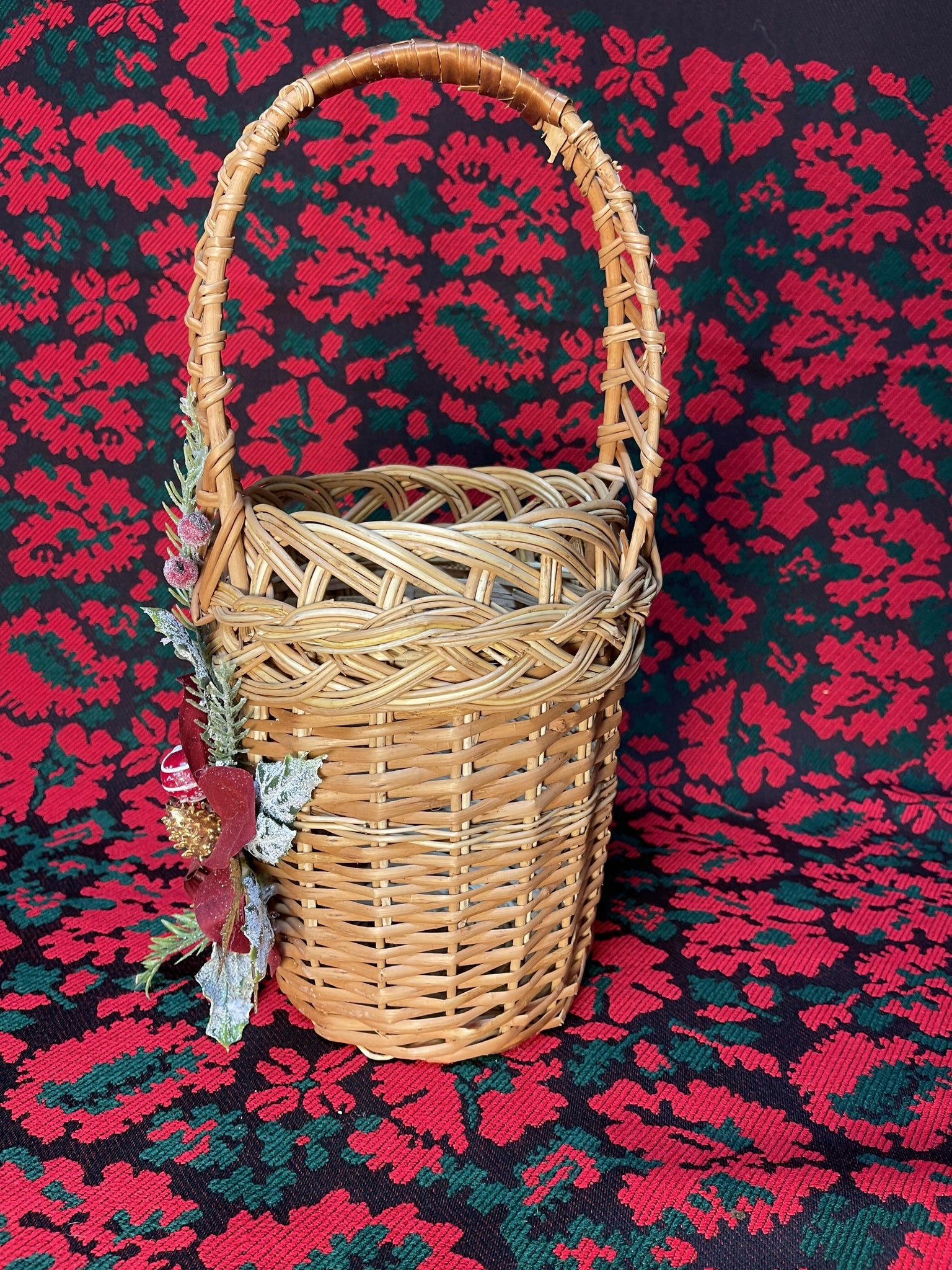 Кошик для Водохреща – ручна робота Стильний плетений кошик, декорований зимовою зеленню та ягодами. Ідеально підходить для освячення води на Водохреща