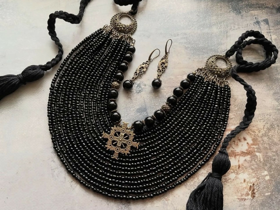 🔹 Скляний крупний бісер, високоякісні намистини, бронзові елементи ручного лиття