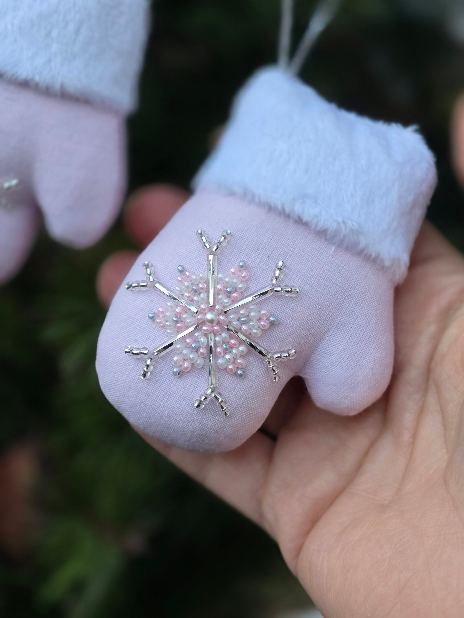 Couple Christmas hand embroidery ornaments “Mittens” beige