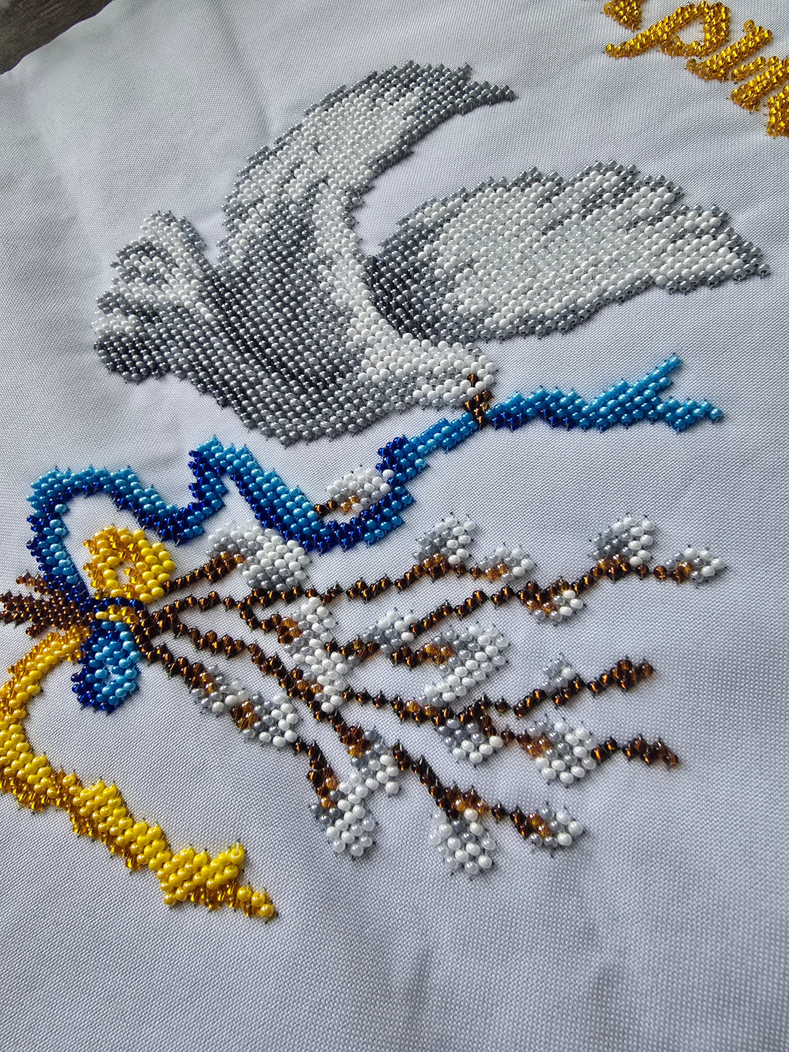 Hand Embroidery Beads Easter Basket Cover / towel with bird 47x33cm