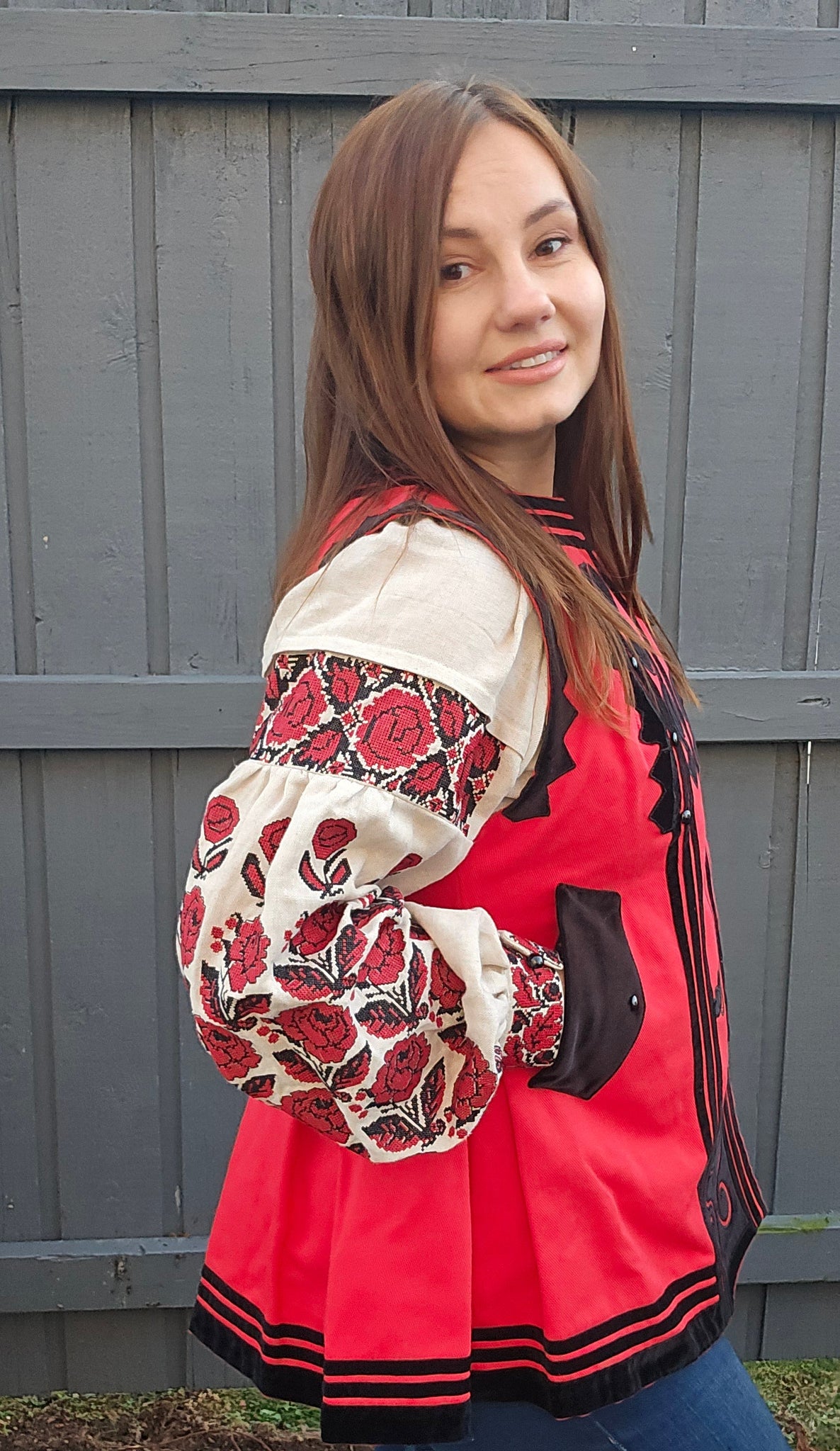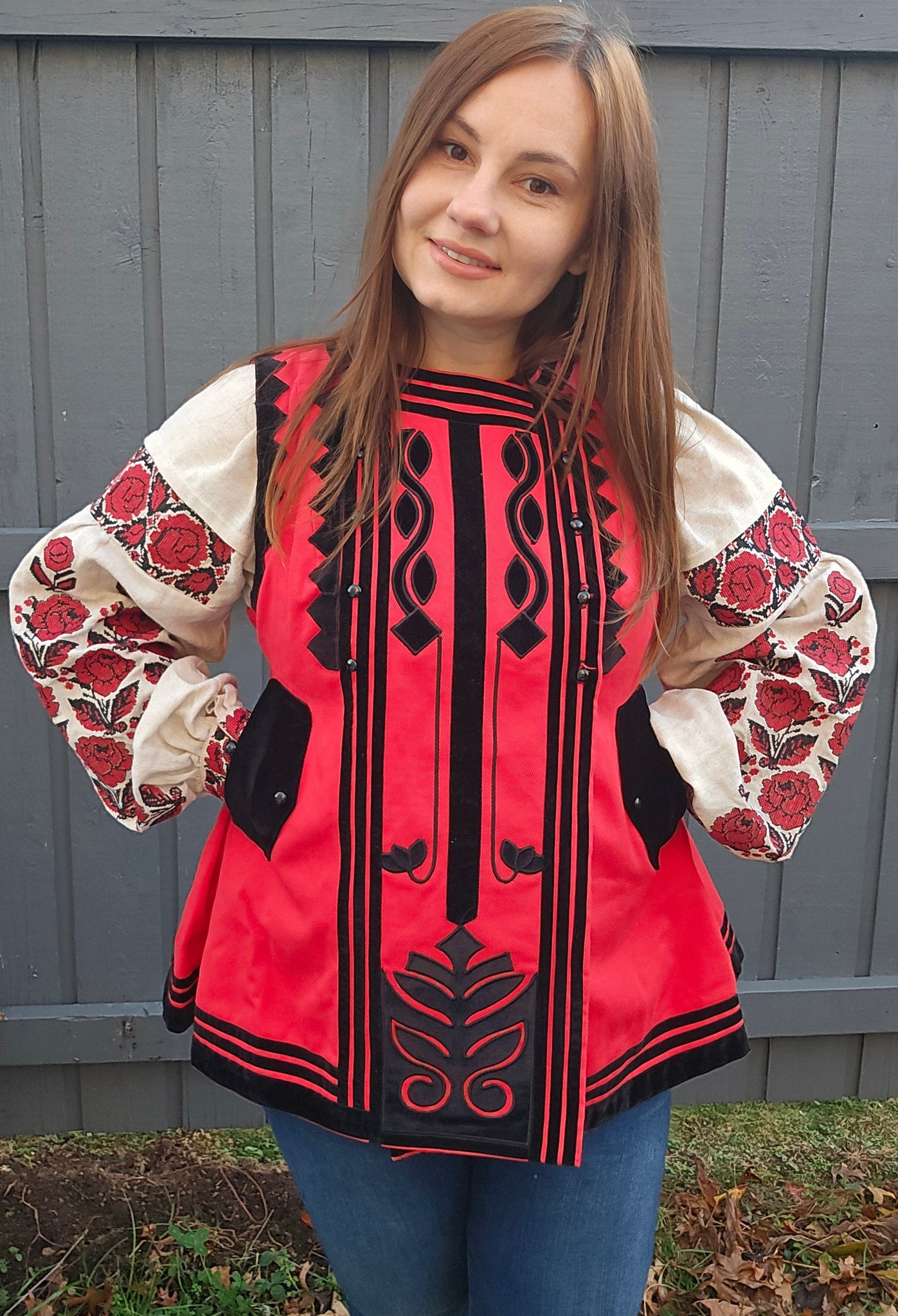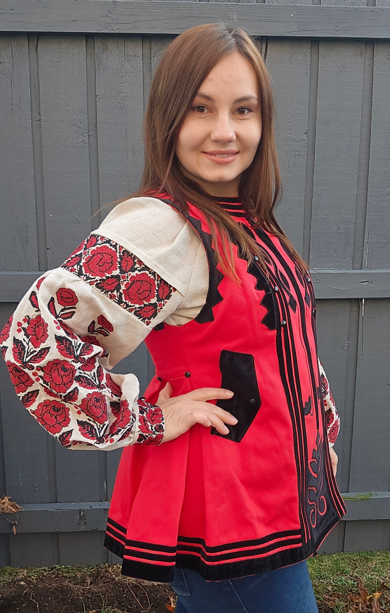Replica of Antique Ukrainian Corset from 19th century / red