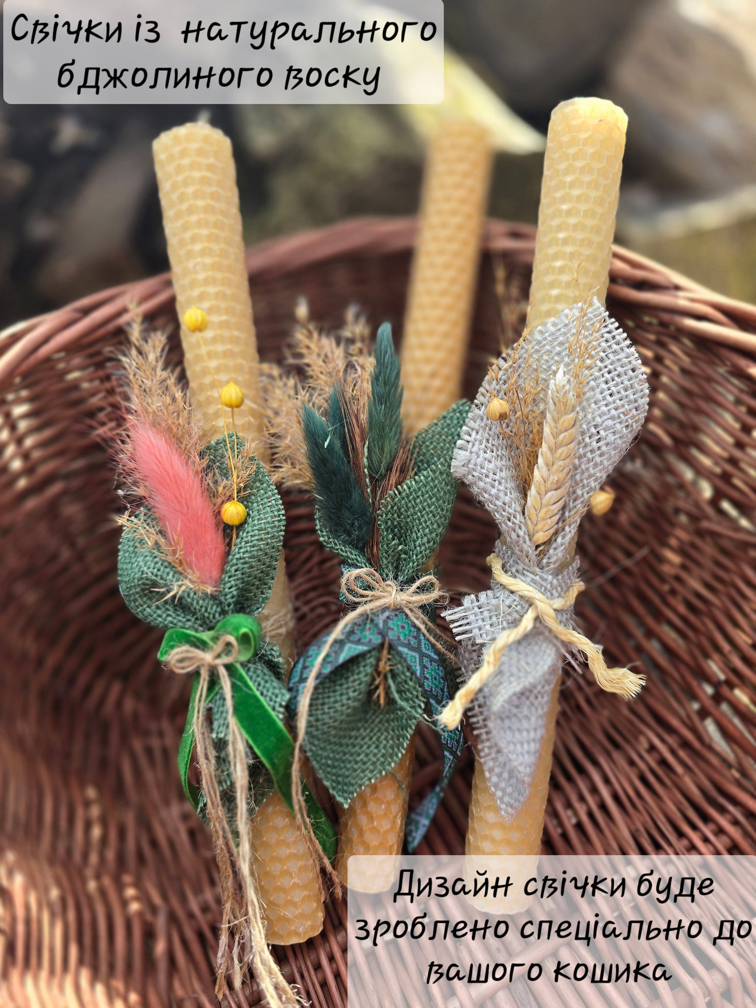 Designer Etno Style Easter Basket “Sunrise“ wood, dry flowers and organic fabric / adult