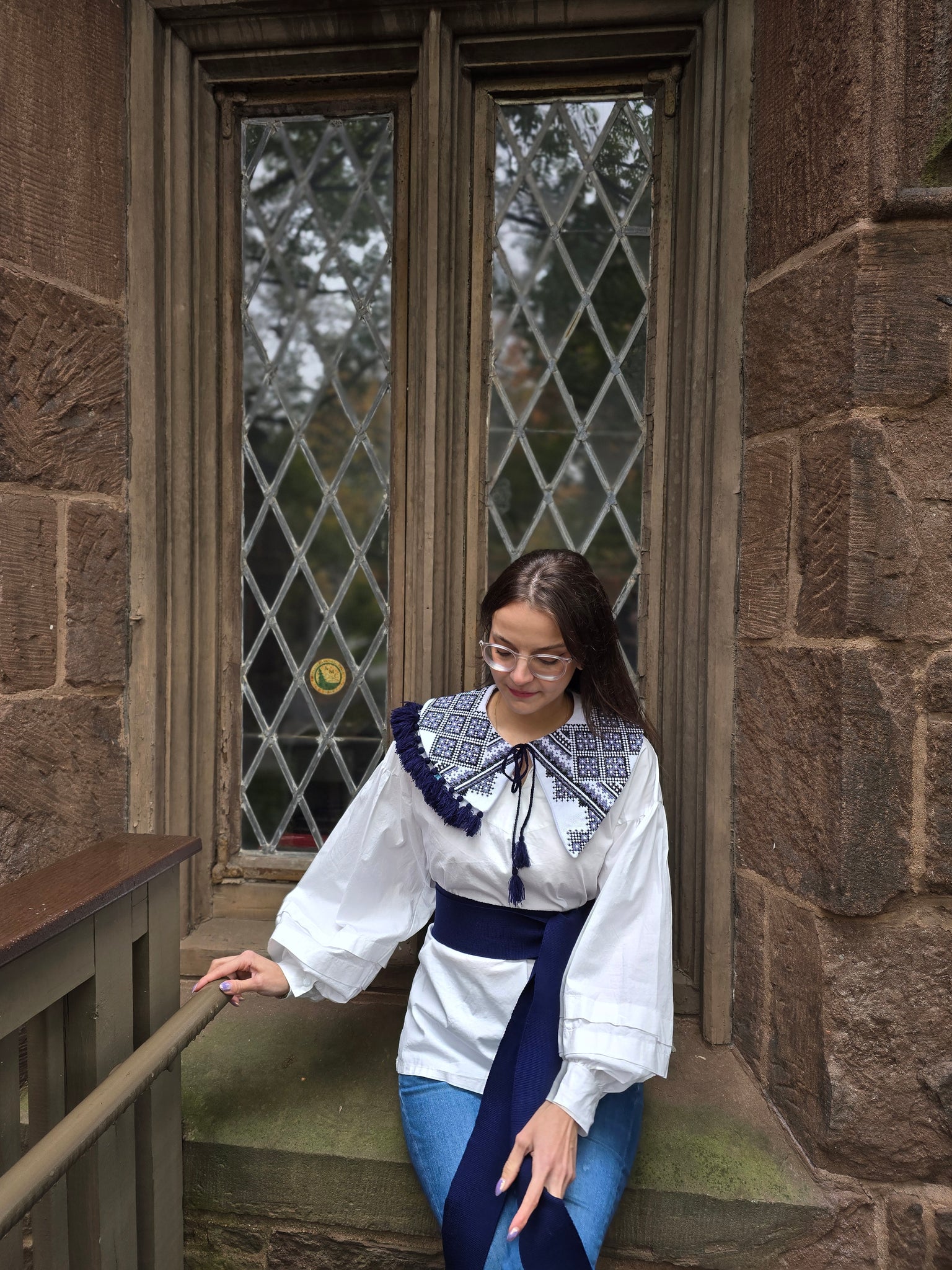 Hand embroidery designer collar / blue / cross stich