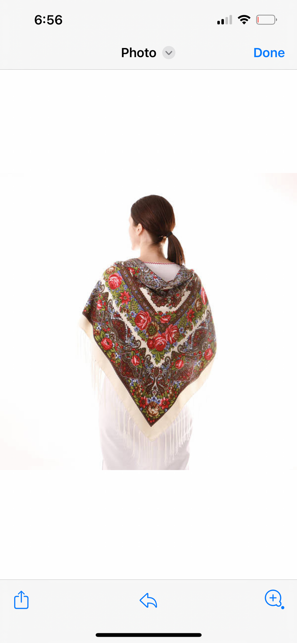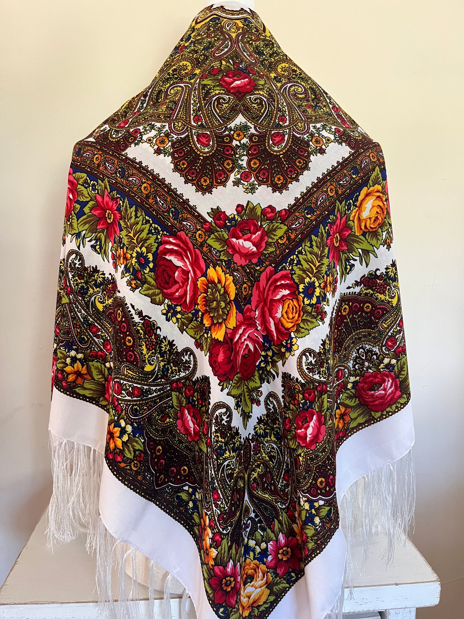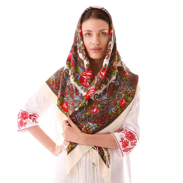 Woolen shawl / scarf with flowers IVORY or WHITE